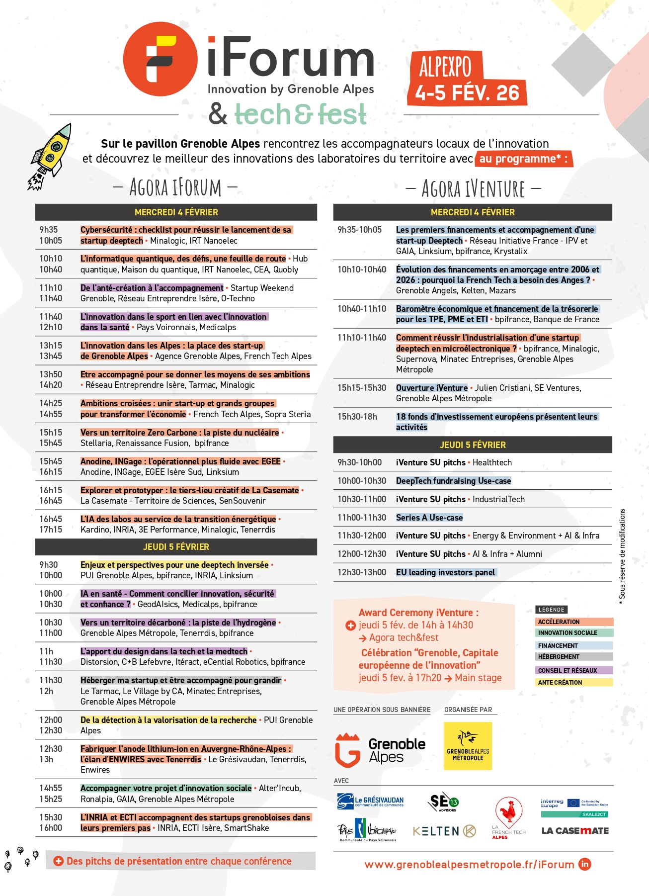 - Le iForum aura lieu les 4 et 5 février 2026 au parc des expositions Alpexpo situé au 2 avenue d’Innsbruck à Grenoble