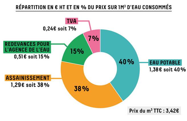 - En moyenne, votre consommation d'eau représente 40% de votre facture d'eau. Le reste est lié au coût de collecte et de traitement des eaux usées, aux frais fixes d'abonnement et aux autres redevances.