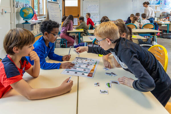 Quand les élèves doivent classer des images de modes de transport, allant de "doux" à "polluant", les interrogations fusent : « Les vélos électriques, ça pollue ? » « Les bulles, ça ne pollue pas. Et le covoiturage ? » Quant à la définition du transport en commun : « Un scooter, car on peut être plusieurs dessus », tente un élève.