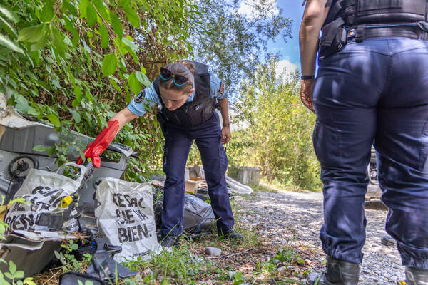 Après le constat, la brigade de vigilance environnementale fait ce que font tous les gendarmes devant une infraction : elle mène l’enquête pour tenter de retrouver les auteurs. Fabrice précise : « On cherche des indices : un numéro de série, une facture... Car oui, cela nous arrive de retrouver des factures dans les tas d’ordures ! Un jour, on a même retrouvé un rideau de fer avec le nom du restaurant inscrit dessus… »