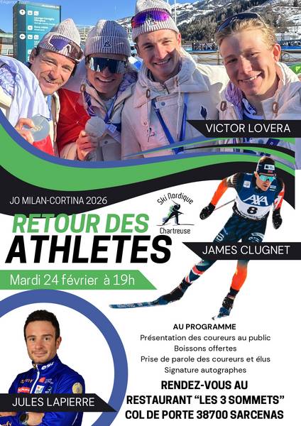 - Vous avez suivi leurs exploits aux JO de Milan-Cortina ? Venez rencontrer trois athlètes au Domaine de Chamechaude, de retour d'Italie : James Clugnet, Jules Lapierre et Victor Lovera.